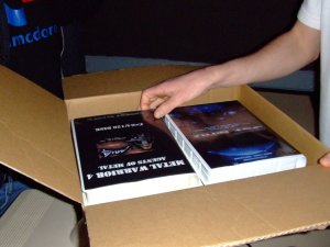 Verpacken einiger Protovision-Spiele für die nächste Veranstaltung, die Olymptronica in Frankfurt/Main.